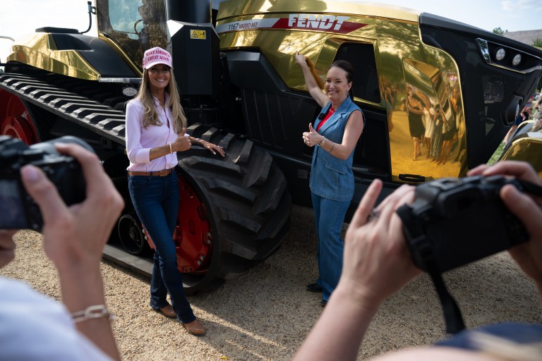 Photo caption: U.S. Agriculture Secretary Brooke Rollins and Administrator of the Small Business Administration Kelly Loeffler take a photo in...